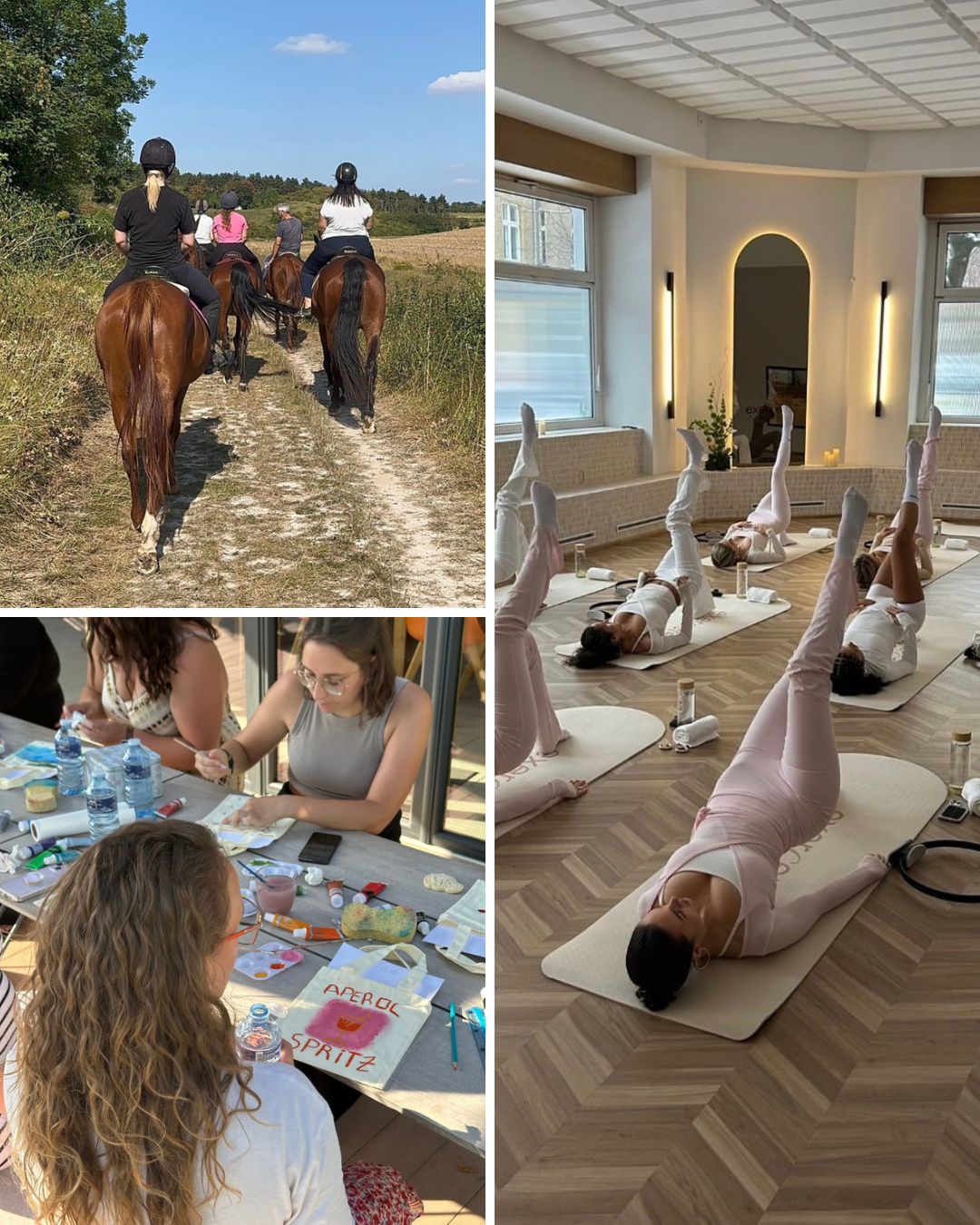 - Activités variées : immersion centre équestre , yoga doux, méditation, Pilates, relaxation, ateliers créatifs, moments de partage.